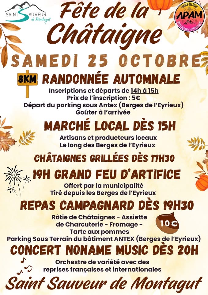 Randonnée, marché producteurs,repas campagnard, feu d'artifice...